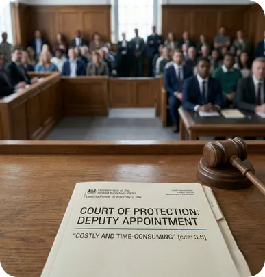 If you lose capacity without an LPA in place, the Court of Protection takes over. This means decisions about your life, your money, your care, your home are made by strangers.