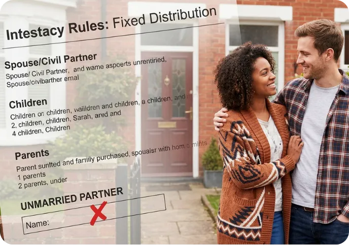 Modern family structures are ignored — unmarried partners, stepchildren, and close friends receive nothing under intestacy rules.